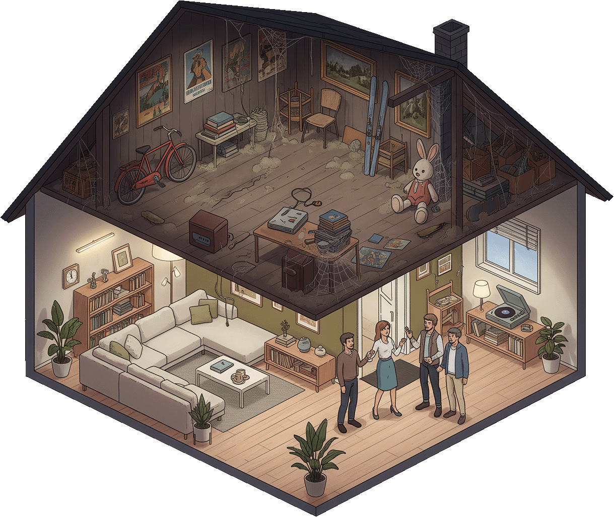 Но в доме есть место, которое никому не покажут. Это чердак. Там темно, пыльно, углы затянуты паутиной и каждый сантиметр завален старым хламом. Хозяин уже сам точно не знает что там лежит. Он залезает туда пару раз в год, но каждый раз, копаясь в вещах, находит давно забытые сокровища.